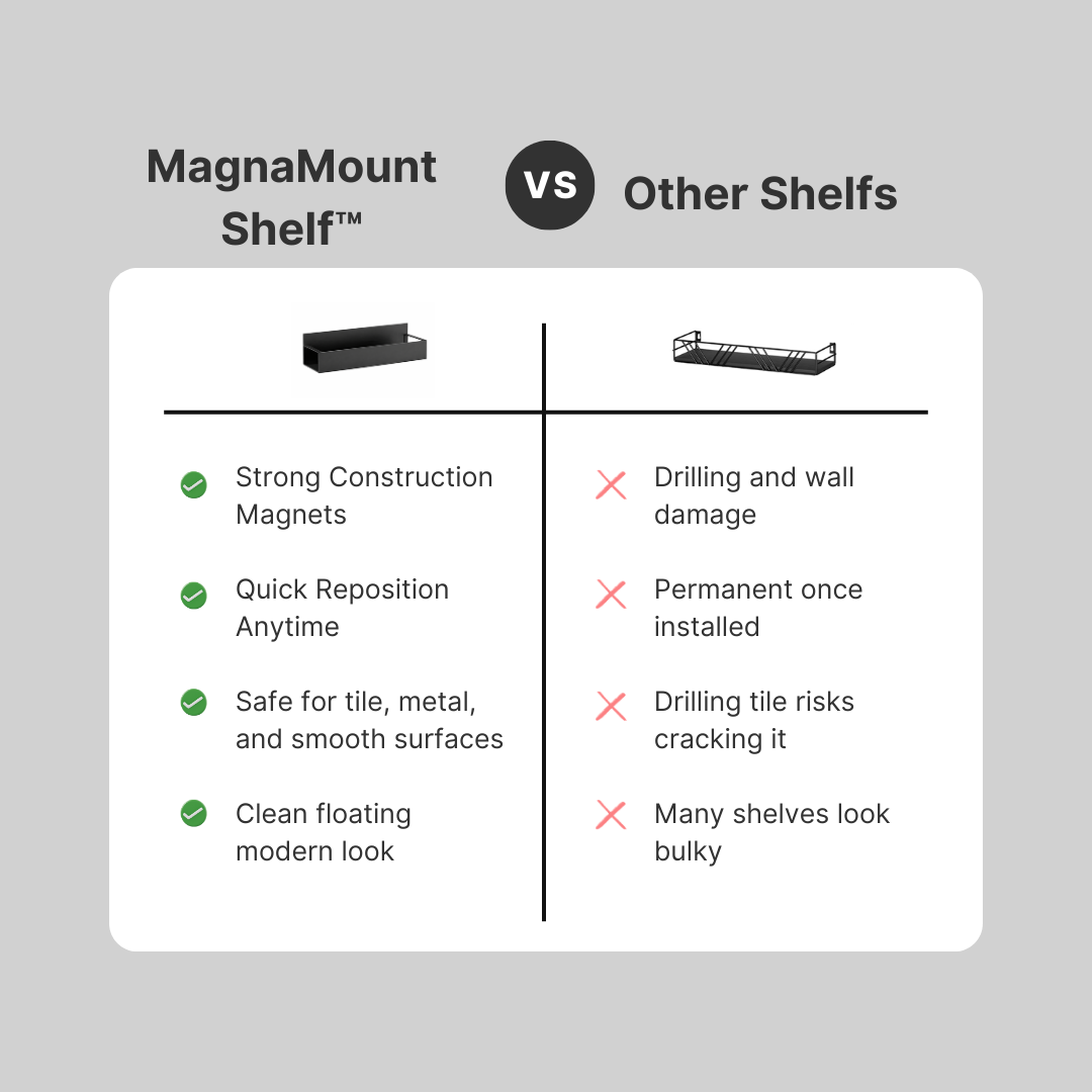Magnamount Shelf offers strong magnetic mounting without tools, installs quickly, looks sleek, and holds securely. Upgrade to a cleaner, smarter shelving solution.